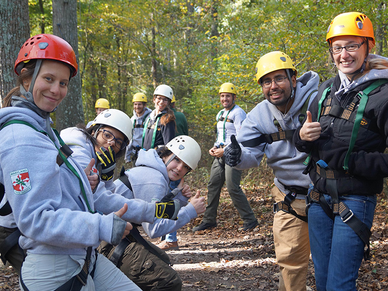 Members of the Maryland Conservation Corps participate in an outdoor team building activity.