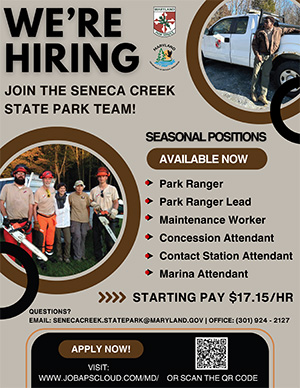 New maps of the trails at Seneca Creek State Park can be downloaded for free from this website. Please make sure to read the printing instructions and information for how to download the file to cell phones. The maps are in a PDF format that requires Adobe Reader.